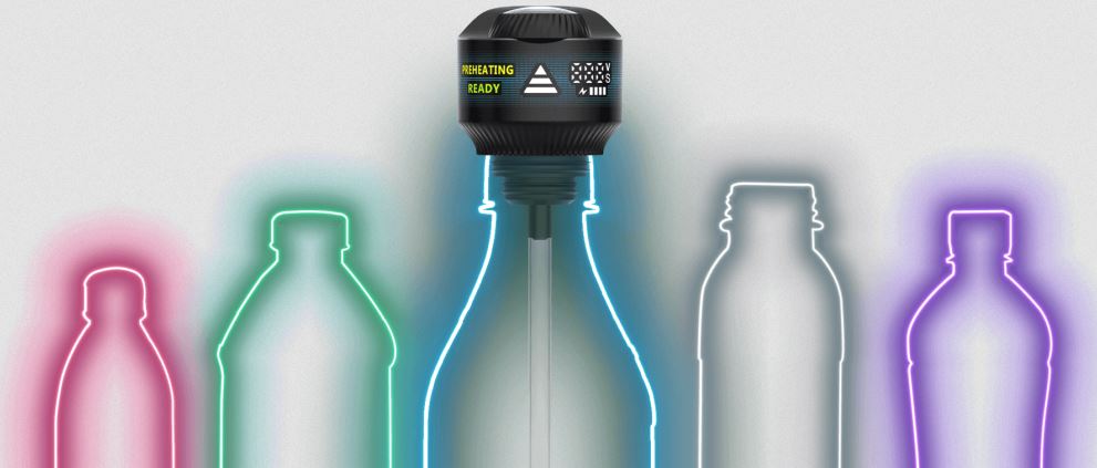 RigGo is a palm-sized dab device that pairs with bottled water for water-filtered use or dry mode, with dual airflow, a full-screen display, and pre-heat.